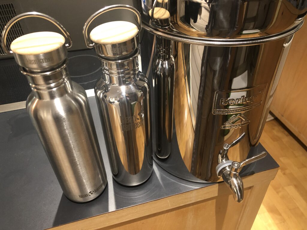 That’s mine, the 1L baby blue bottle in the middle there. For whatever reason, I fell in love with this bottle. And I instantly started drinking at least two of these (2 liters = 64 oz) a day. I brought it everywhere to avoid using plastic bottles. And I upgraded my Brita/Pur filtration systems to Berkey. All in the name of sustainability.